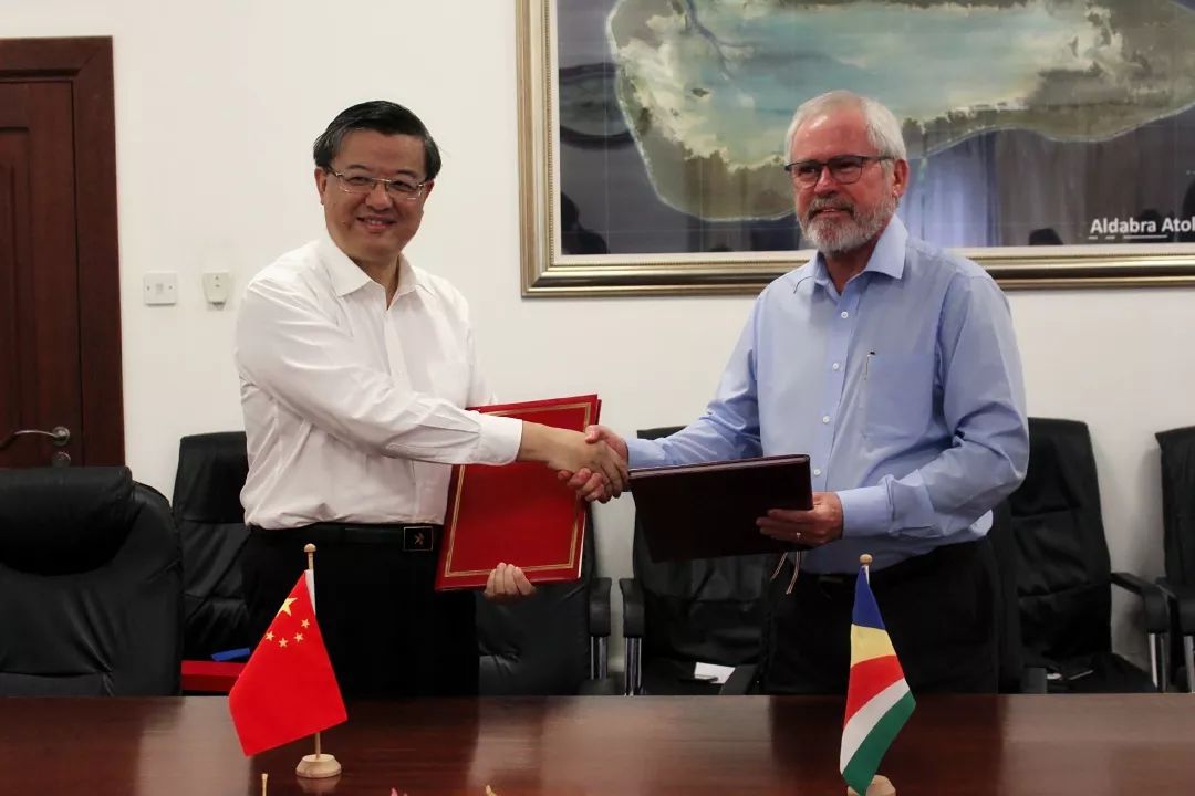 海关总署署长倪岳峰与塞舌尔财政部部长签字仪式