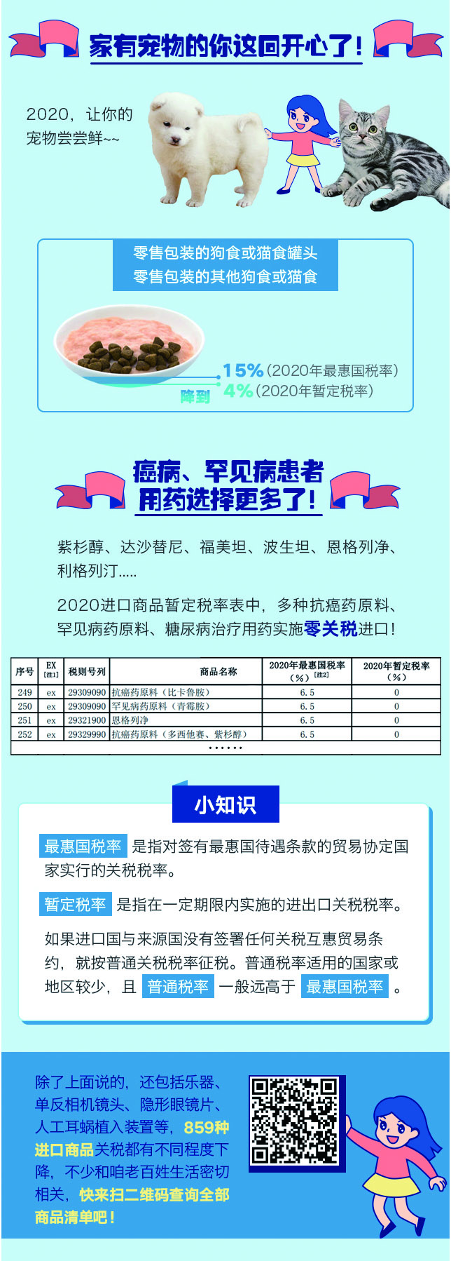 国务院关税税则委员会发布2020年进口暂定税率等调整方案,自2020年 1月1日起,对宠物食品、部分水产品、冻猪肉、蓝纹乳酪、婴儿尿布等859项商品实施低于最惠国税率的进口暂定税率,过年想回点啥洋货,赶紧一起来看看!