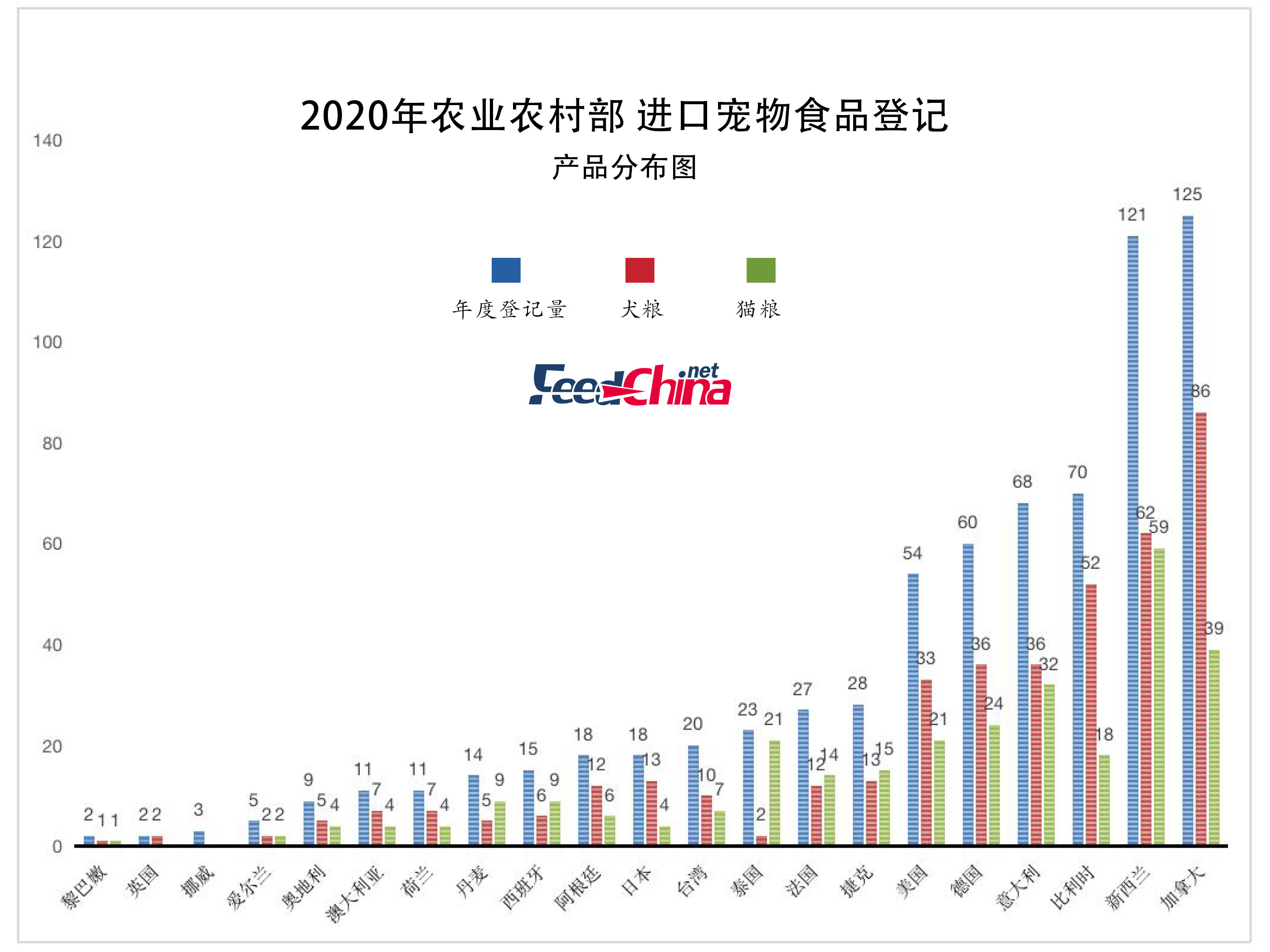 随着2020年12月16日农业农村部公告(第371号)的公示,本年度最后一批次进口宠物食品登记证书已开始陆续发放,进口宠物食品在中国登记数量再刷新历史高度,根据进口饲料登记中心(FeedChina)年终统计,在农业农村部登记的有效配方产品(证书)近两千之多,仅本年度就达704个产品。
